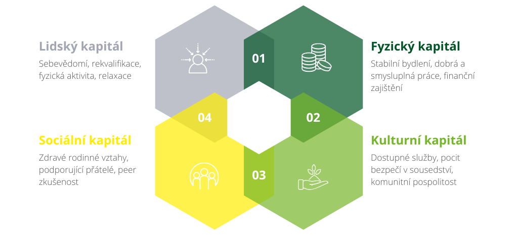 Nejdůležitější předností kapitálu pro zotavení však zůstává, že se nedívá na člověka jako na jedince izolovaného na poušti. Vnímá ho jako součást sítě tvořené lidskými vztahy v určitém místě a čase.